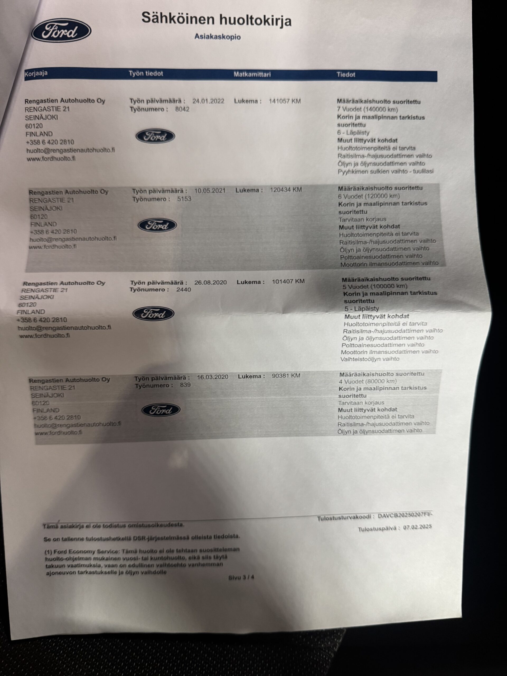 Auto on siisti sekä sisältä että ulkoa, ja sitä on huollettu säännöllisesti.