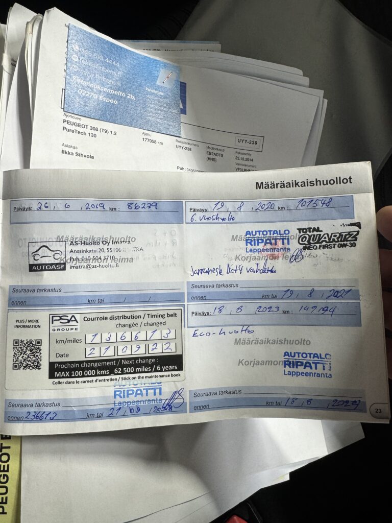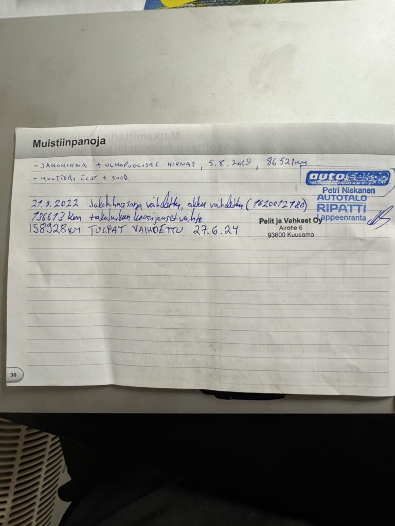 – Öljyhuolto tehty 06.01.2026, ajokilometrit 177 500 km