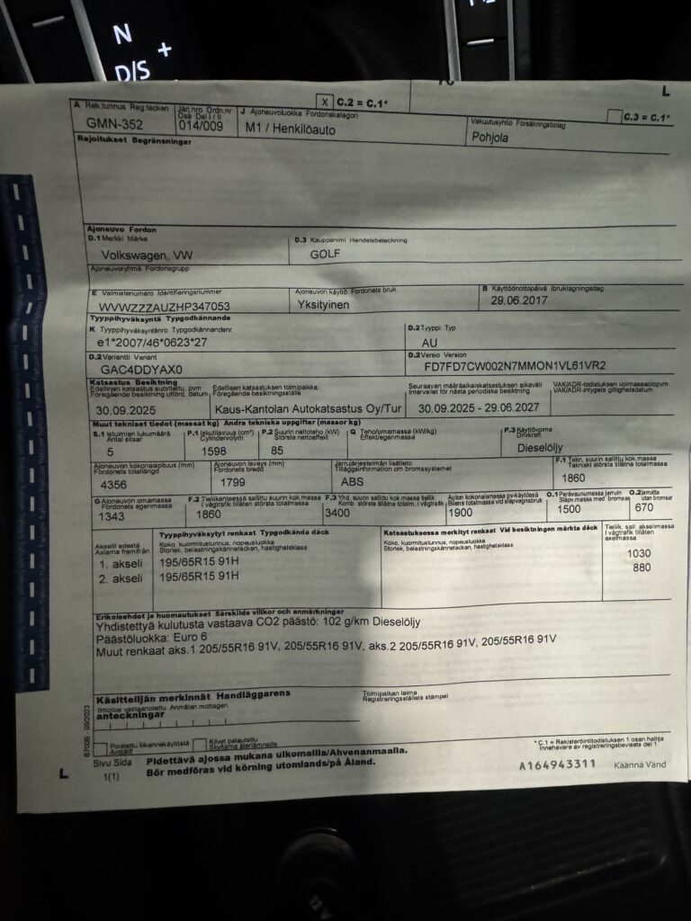 Volkswagen Golf 1.6 TDI, vuosimalli 2017, hyväkuntoinen ja luotettava auto.